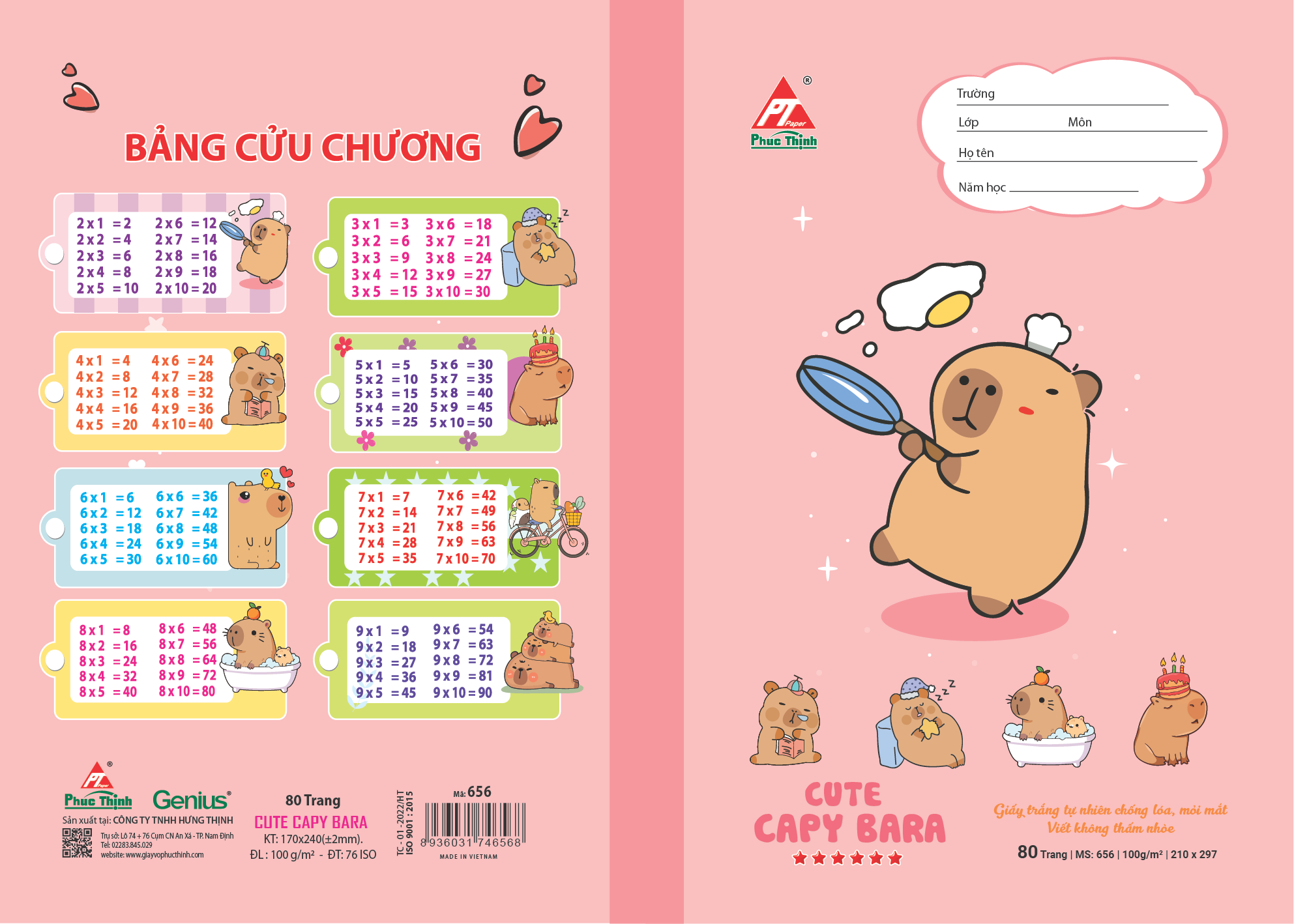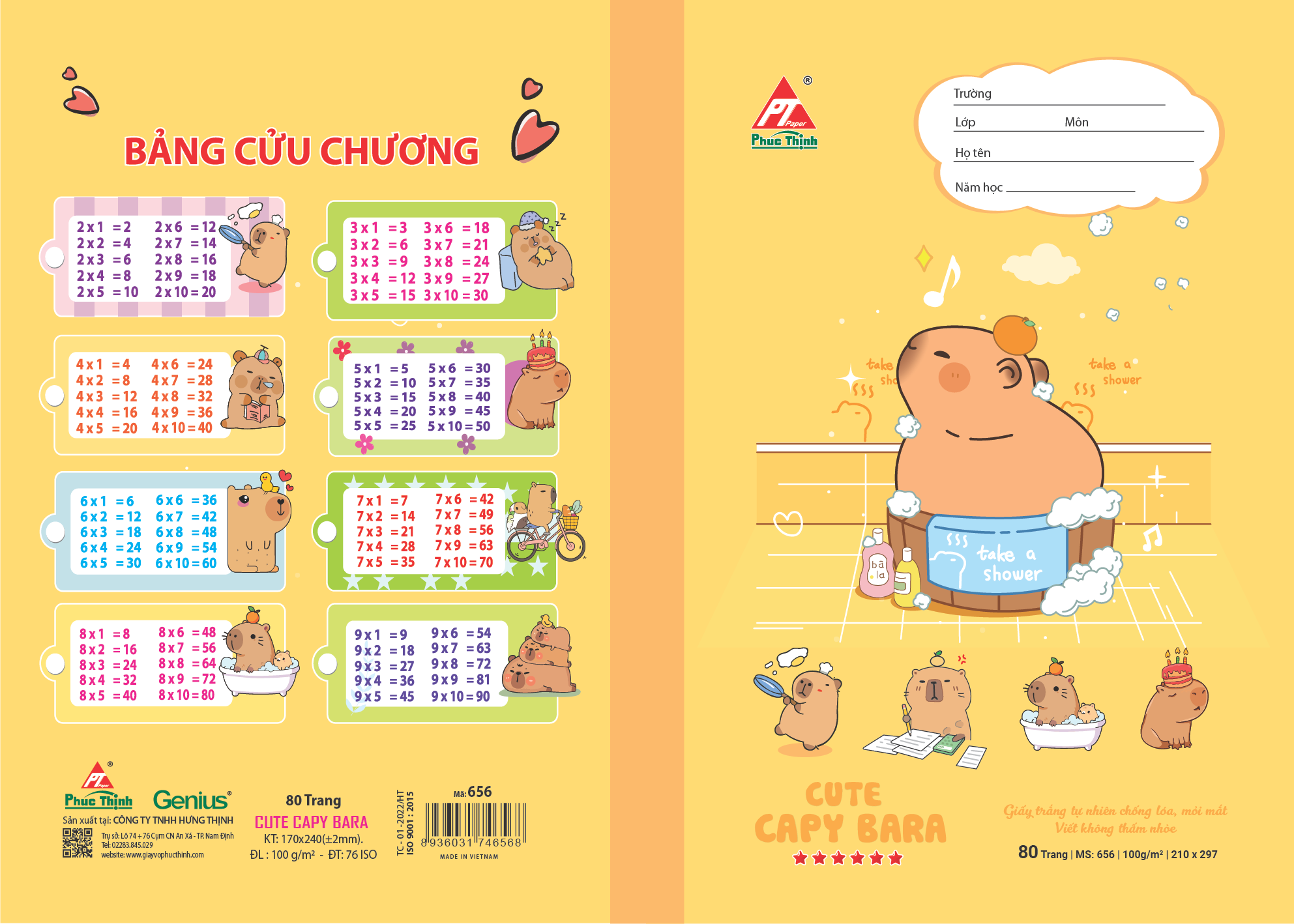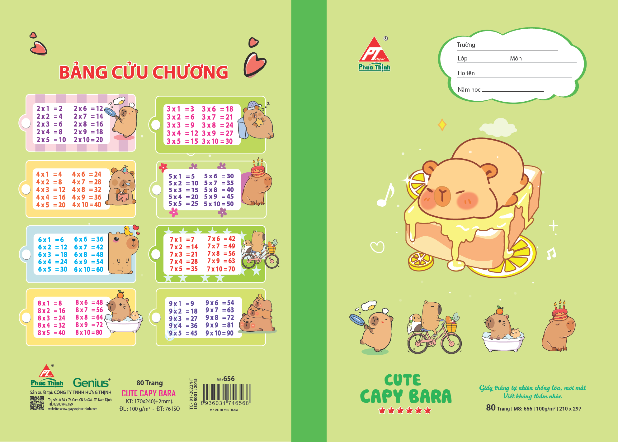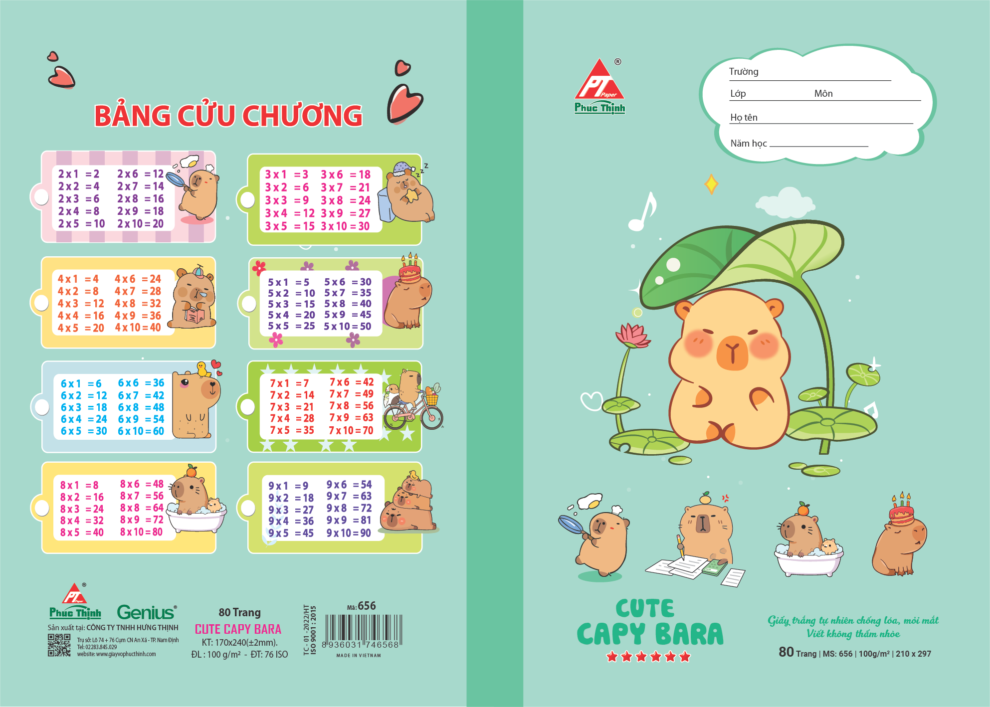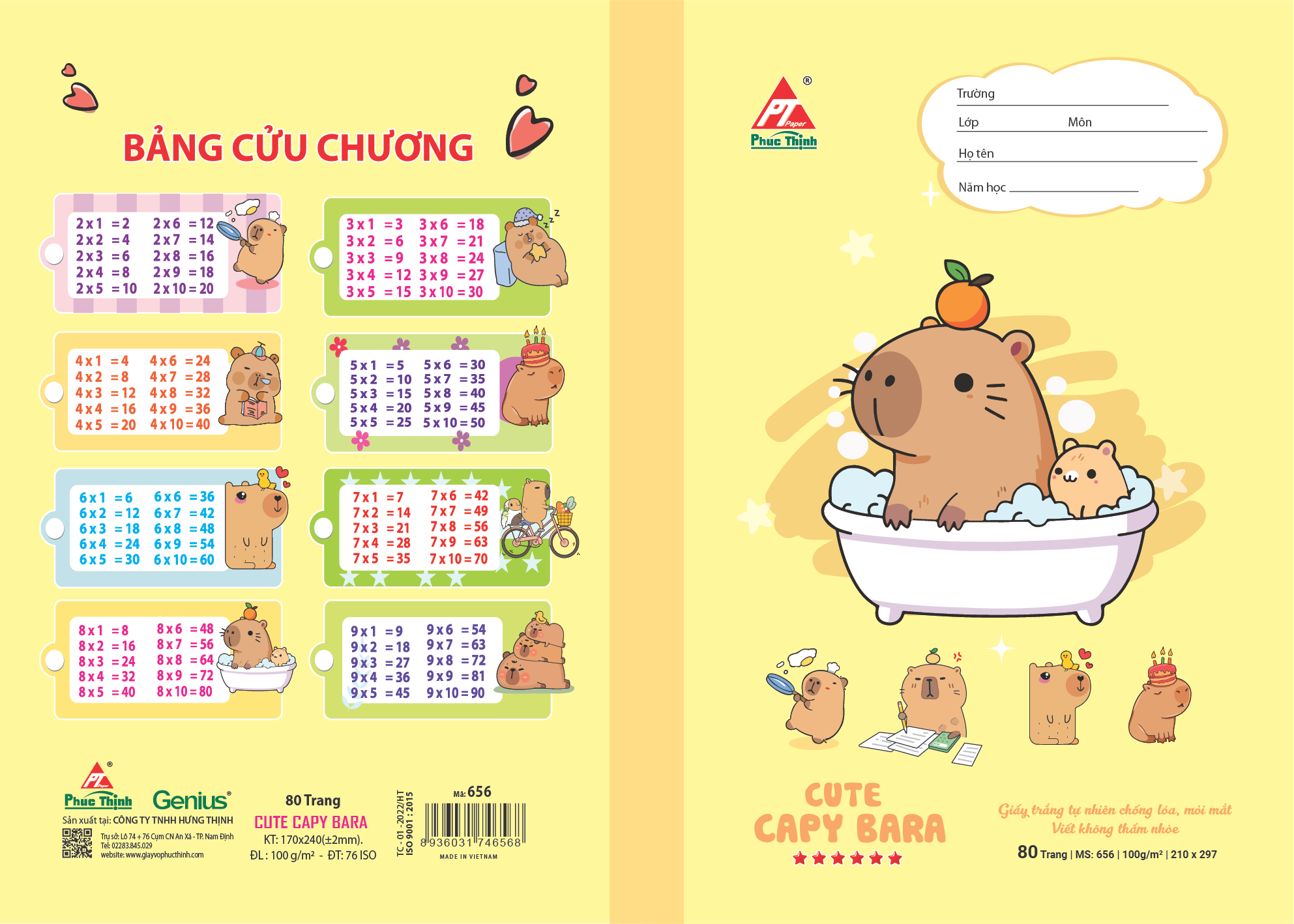 Vở học sinh Phúc Thịnh – mã số 655 & 656 là lựa chọn lý tưởng cho học sinh tiểu học và trung học, kết hợp giữa chất lượng giấy cao cấp và thiết kế bìa bắt mắt. Với kích thước chuẩn 170 x 240 mm, sản phẩm vừa vặn với cặp sách học sinh, dễ dàng mang theo đến lớp hay học thêm.