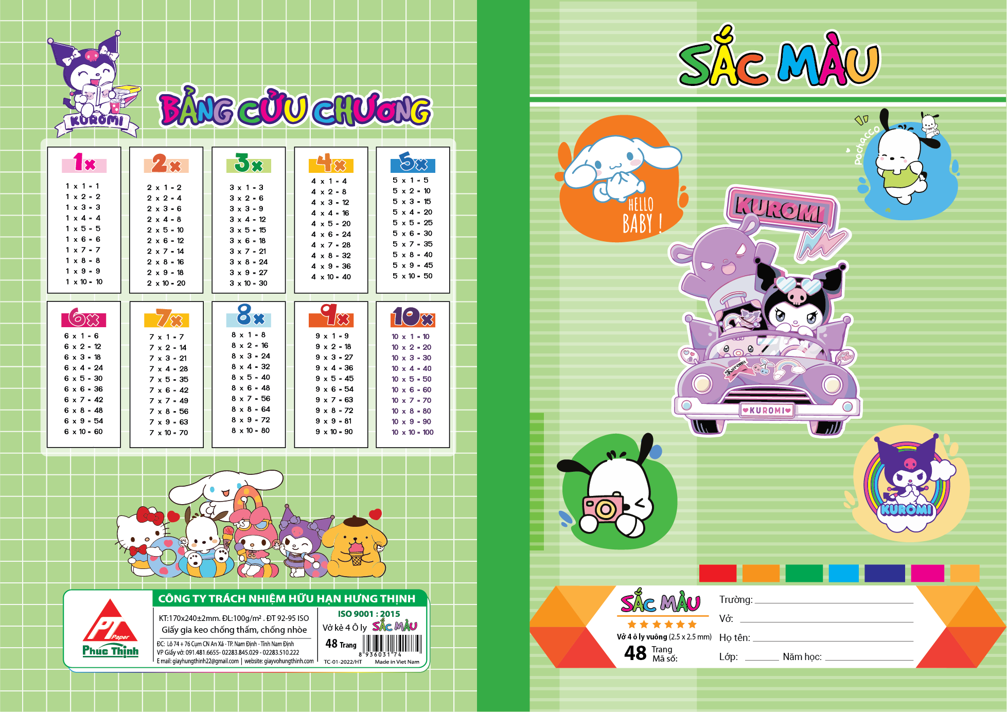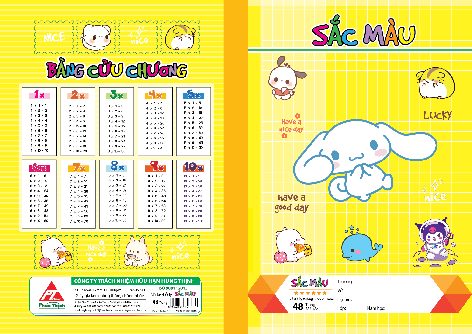 Bìa vở được in offset chất lượng cao, chống thấm nước nhẹ, giúp bảo vệ ruột vở bên trong khỏi những va chạm hay thời tiết bất thường. Đặc biệt, phần bìa sau còn có thêm bảng thông tin cá nhân để học sinh dễ dàng ghi tên, lớp, trường – một chi tiết nhỏ nhưng cực kỳ tiện lợi và thân thiện.