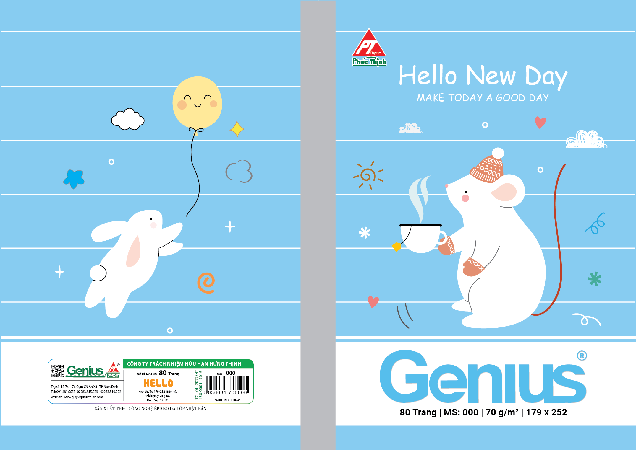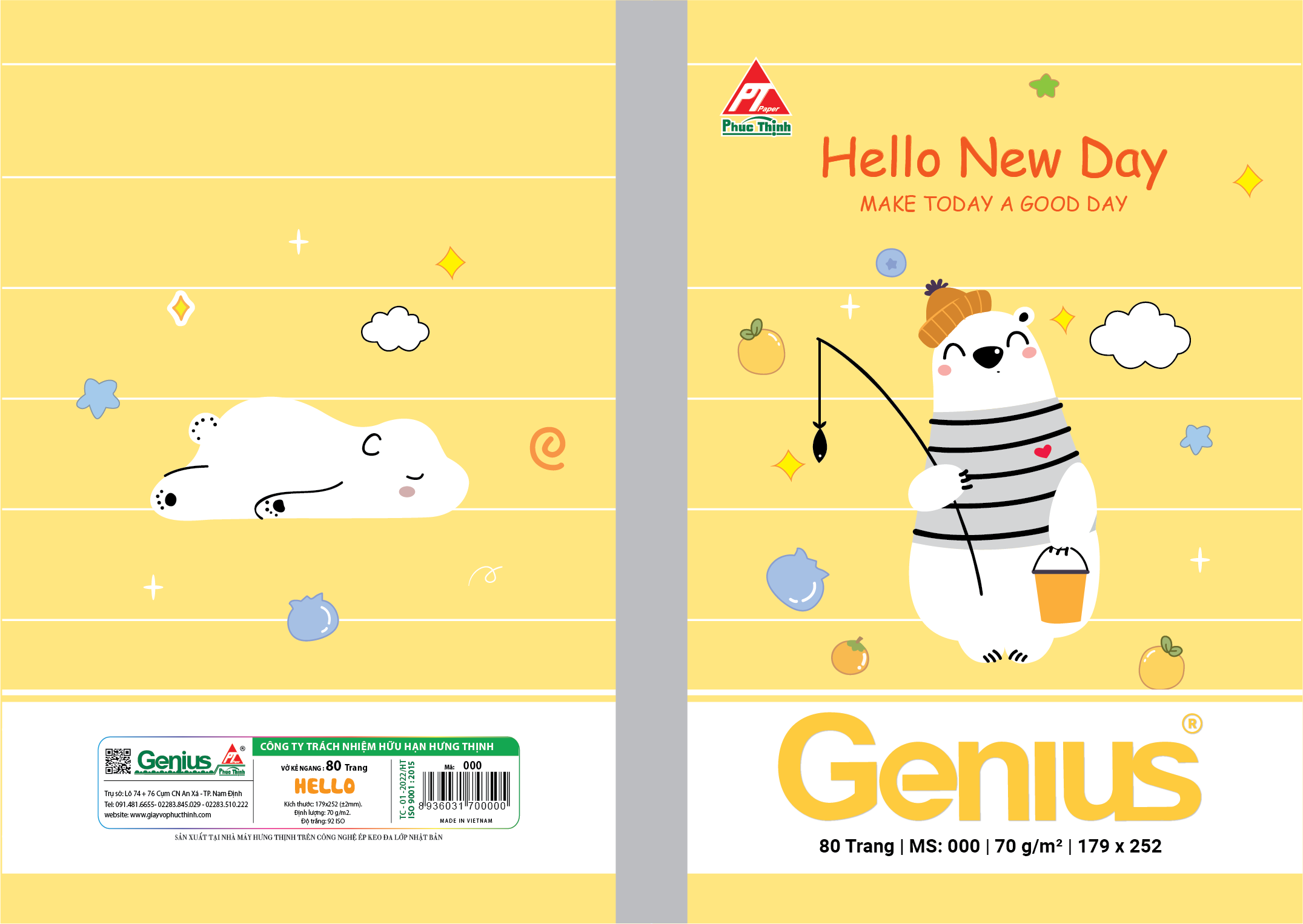 Vở HELLO – Khởi đầu ngày mới đầy cảm hứng Dòng Vở Kẻ Ngang HELLO – Hello New Day mang đến sự tươi mới và dễ thương trong từng trang vở, với hình ảnh gấu Bắc Cực đáng yêu cùng gam màu pastel nhẹ nhàng. Đây là sản phẩm chất lượng cao từ thương hiệu Genius – Phúc Thịnh, thuộc Công ty TNHH Hưng Thịnh – đơn vị chuyên sản xuất giấy vở học sinh từ năm 2002.